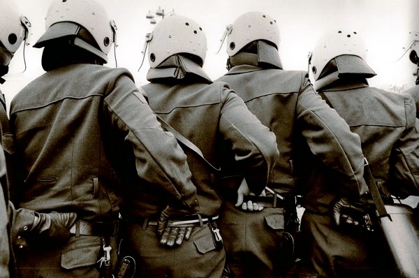 „Wasserschlacht vor dem Bundestag“ in Bonn, 1983 - Der Bundestag stimmt für den Nato-Doppelbeschluss zur Stationierung atomarer Mittelstreckenraketen „Pershing II“, World Press Photo, Honorable Mention, News Features Stories,1983